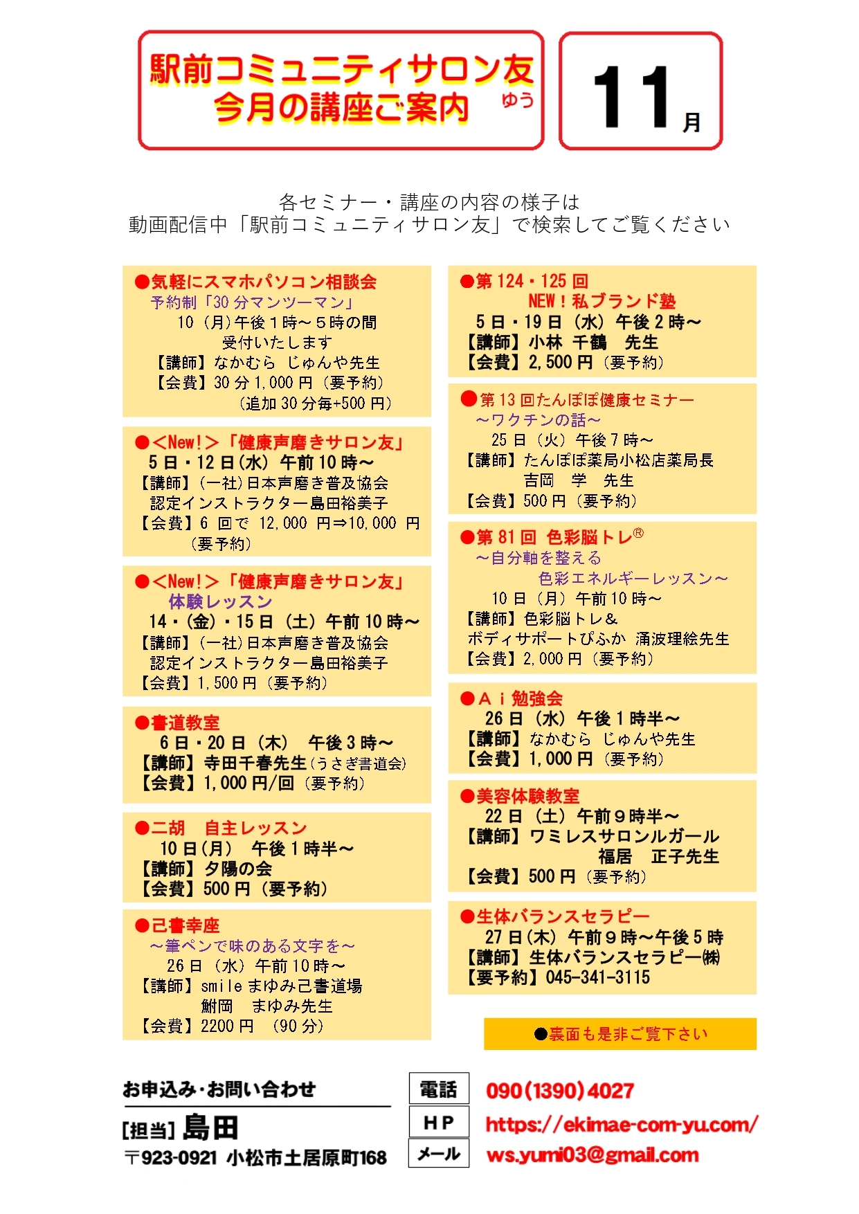 場所:駅前コミュニティサロン 友(小松市土居原町168)